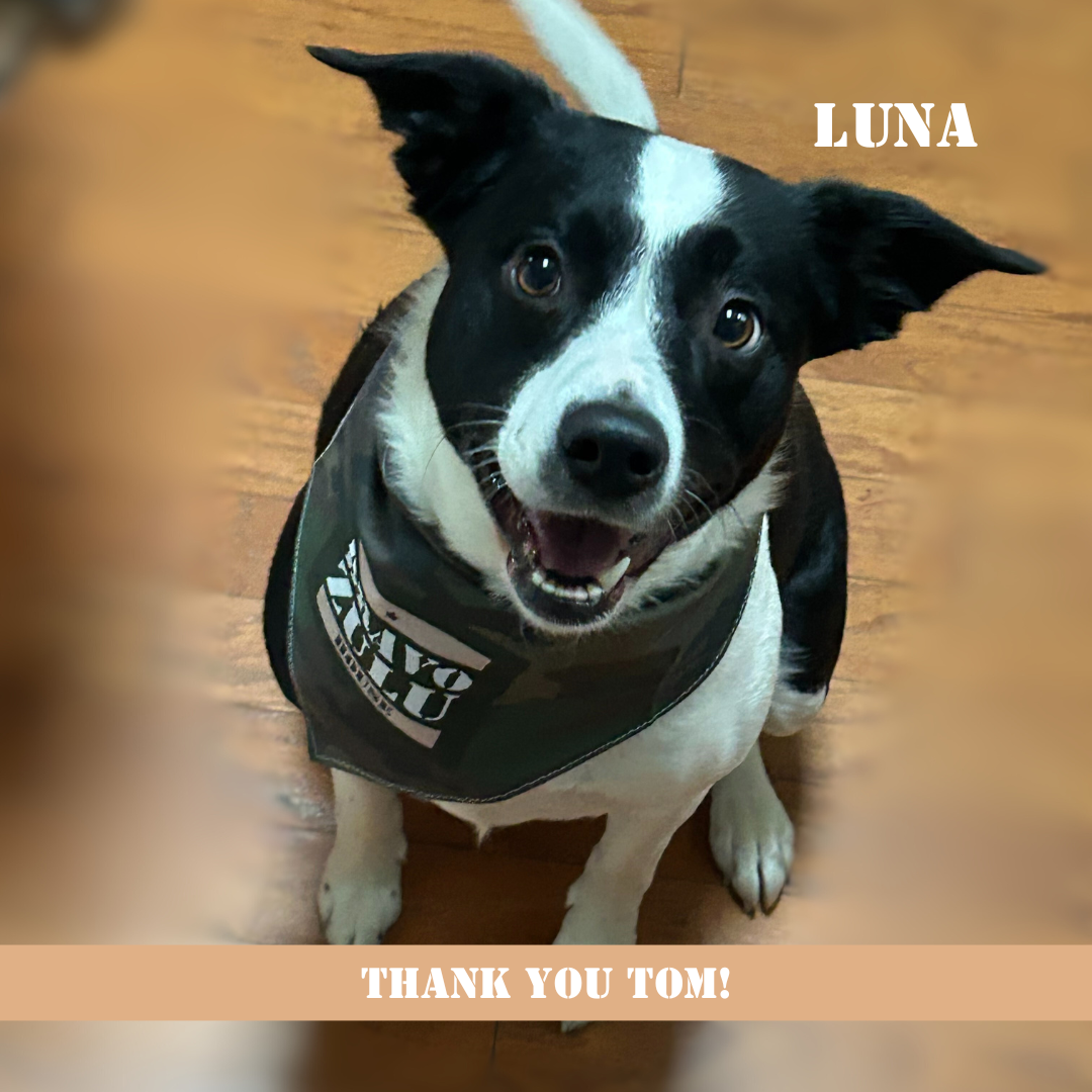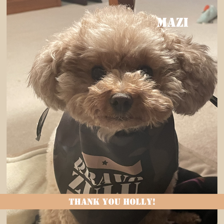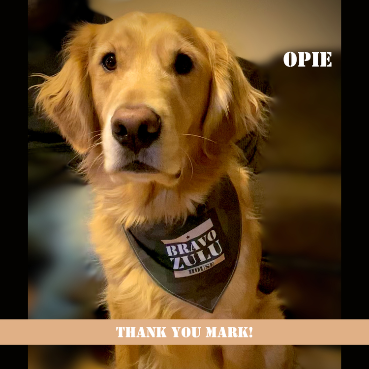 Tails of Hope donors will receive this Bravo Zulu House bandana for your Patriot Pup and if you send us a photo, we will feature your pup on our site - scroll down to see our furry friends!